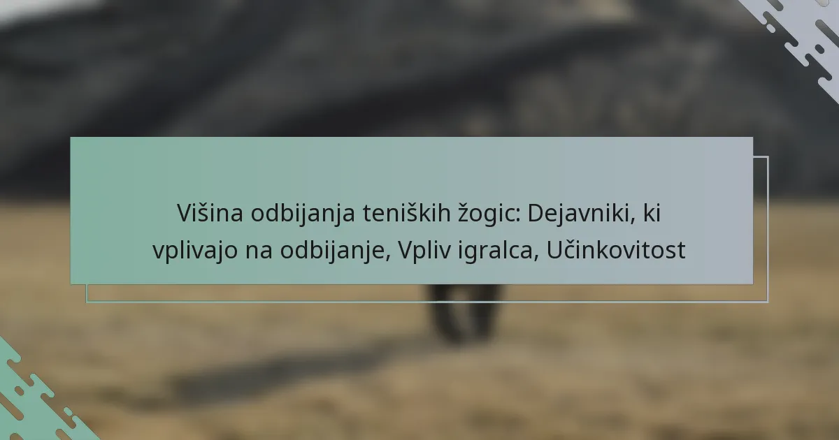 Izbira teniških žogic glede na višino odbijanja vključuje razumevanje dejavnikov, ki vplivajo na zmogljivost in preference igralcev. Ključni dejavniki vključujejo konstrukcijo žogice, površino za igro in okoljske pogoje, ki vsi vplivajo na to, kako visoko se bo žogica odbila med igro.