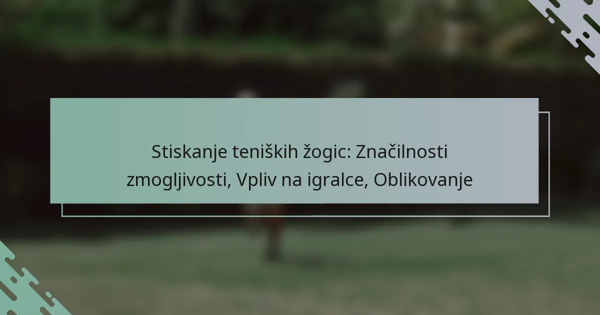 Kompresija teniških žogic igra ključno vlogo pri določanju njihovih zmogljivostnih značilnosti, kot so odbijanje, hitrost in spin. Z razumevanjem, kako različne ravni kompresije vplivajo na igro, lahko igralci izberejo idealno žogico, ki dopolnjuje njihov slog in izboljšuje njihovo splošno izkušnjo na igrišču. Poleg tega oblikovni elementi, povezani z materiali in proizvodnimi procesi, dodatno vplivajo na te zmogljivostne metrike, oblikujejo dinamiko igre.