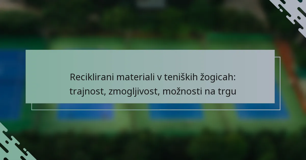 Reciklirani materiali v teniških žogah predvsem vključujejo reciklirano gumo, ponovno uporabljene plastike in naravne vlaknine. Ti materiali prispevajo k okolju prijaznim proizvodnim metodam, kar pomaga zmanjšati skupni ogljični odtis proizvodnje teniških žog.