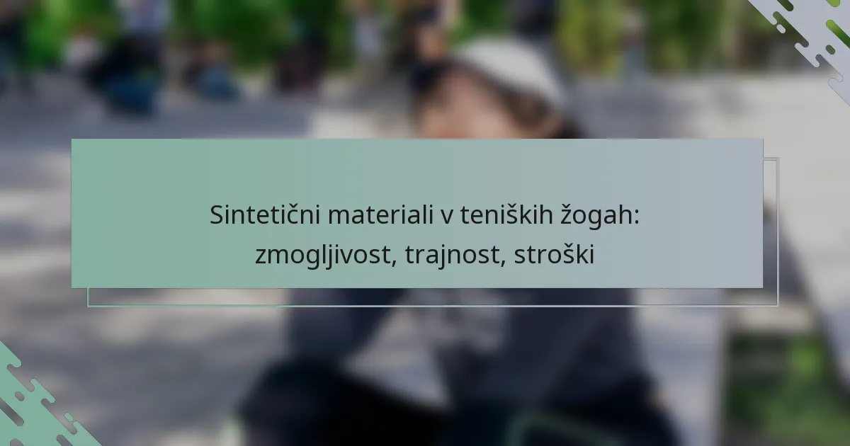 Sintetični materiali znatno vplivajo na zmogljivost teniških žogic, vplivajo na vidike, kot so odbijanje, hitrost, spin in nadzor. Izbira materialov lahko privede do razlik v tem, kako se žogica obnaša na različnih površinah igrišča, kar na koncu vpliva na izkušnje in preference igralcev.