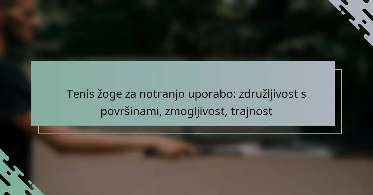 Tenis žoge, zasnovane za notranjo uporabo, so posebej oblikovane za optimizacijo zmogljivosti na različnih notranjih površinah, kar zagotavlja idealno ravnotežje med odbijanjem, hitrostjo in trajnostjo. Pri izbiri pravih tenis žog je pomembno upoštevati vrsto površine, vašo raven znanja in proračun, da izboljšate svojo celotno igralno izkušnjo. Vrhunske blagovne znamke, kot so Wilson, Penn in Dunlop, ponujajo visokokakovostne možnosti, ki zagotavljajo dosledno igrivost in dolgo življenjsko dobo na notranjih igriščih.